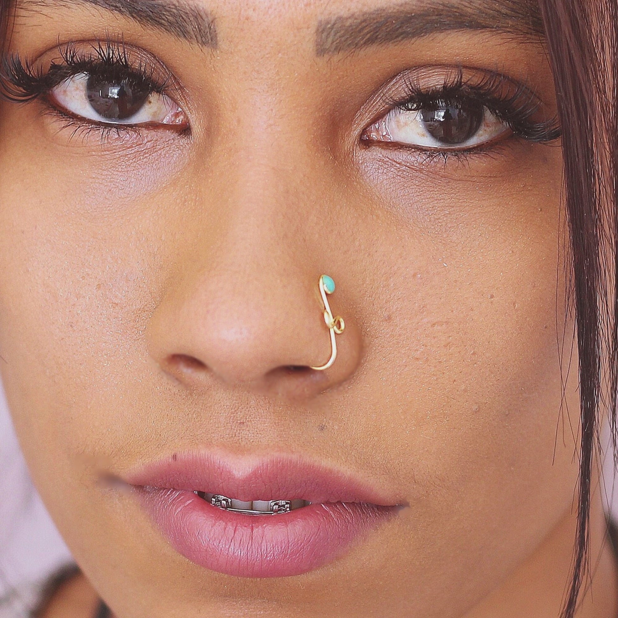 Turquoise Nose Cuff – Piercing Stud – Gold Plated Surface