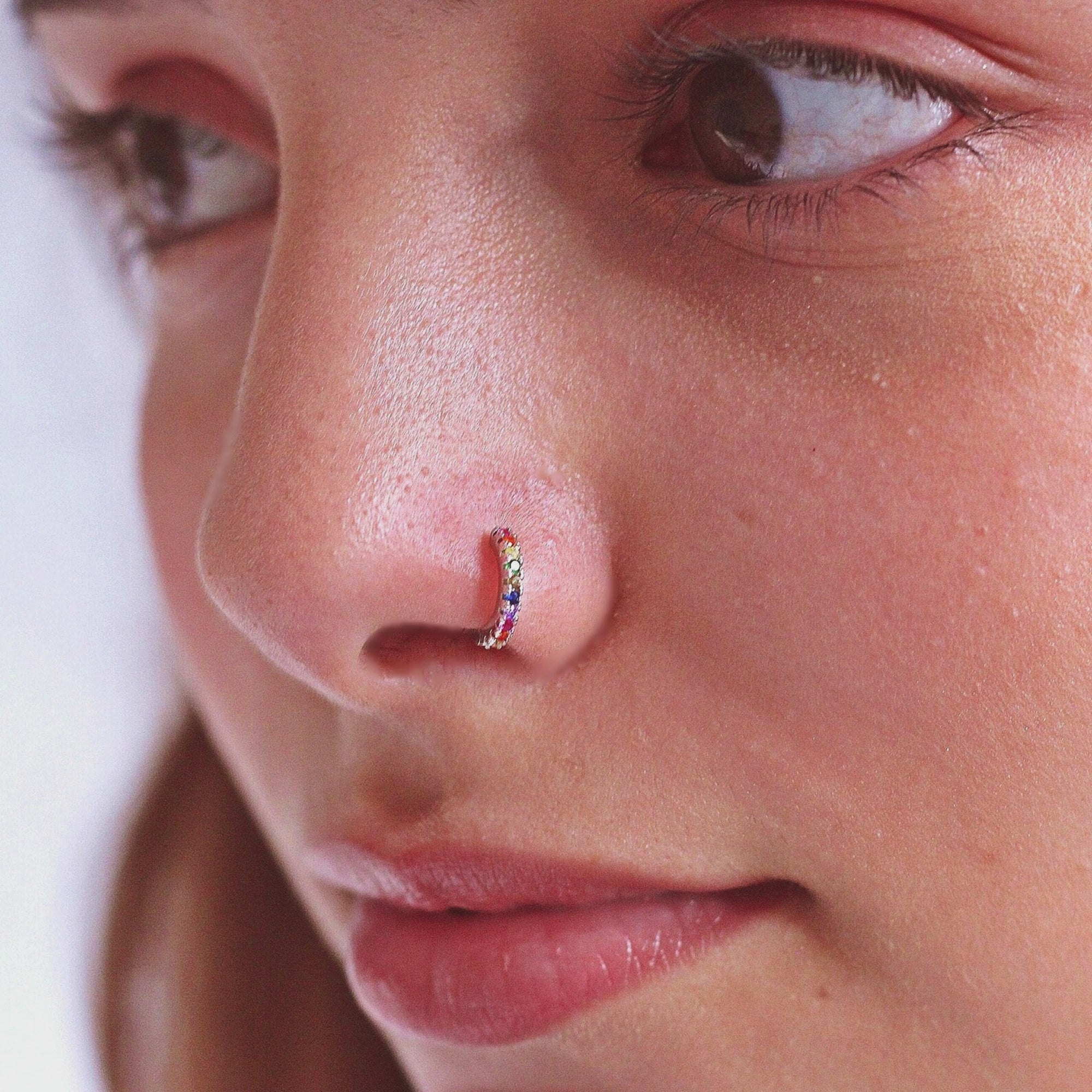 CZ Nose Hoop – Piercing Stud – Multicolor CZ Stones