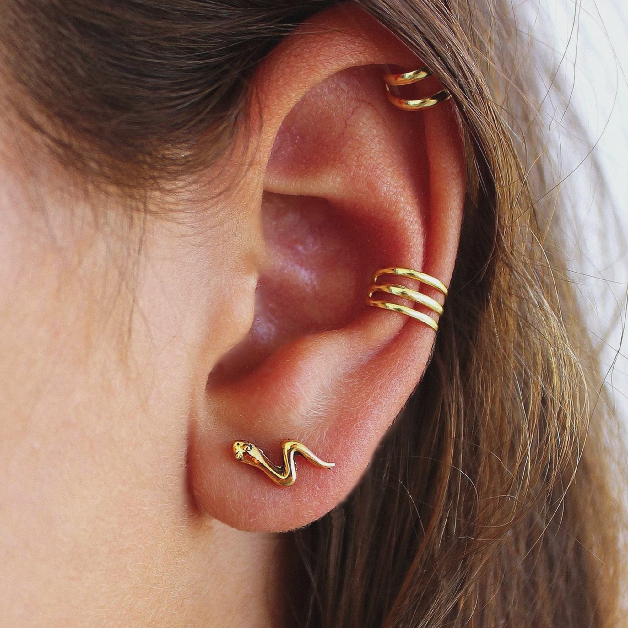 Tiny Snake Stud Earrings – Piercing Stud – Delicate Texture