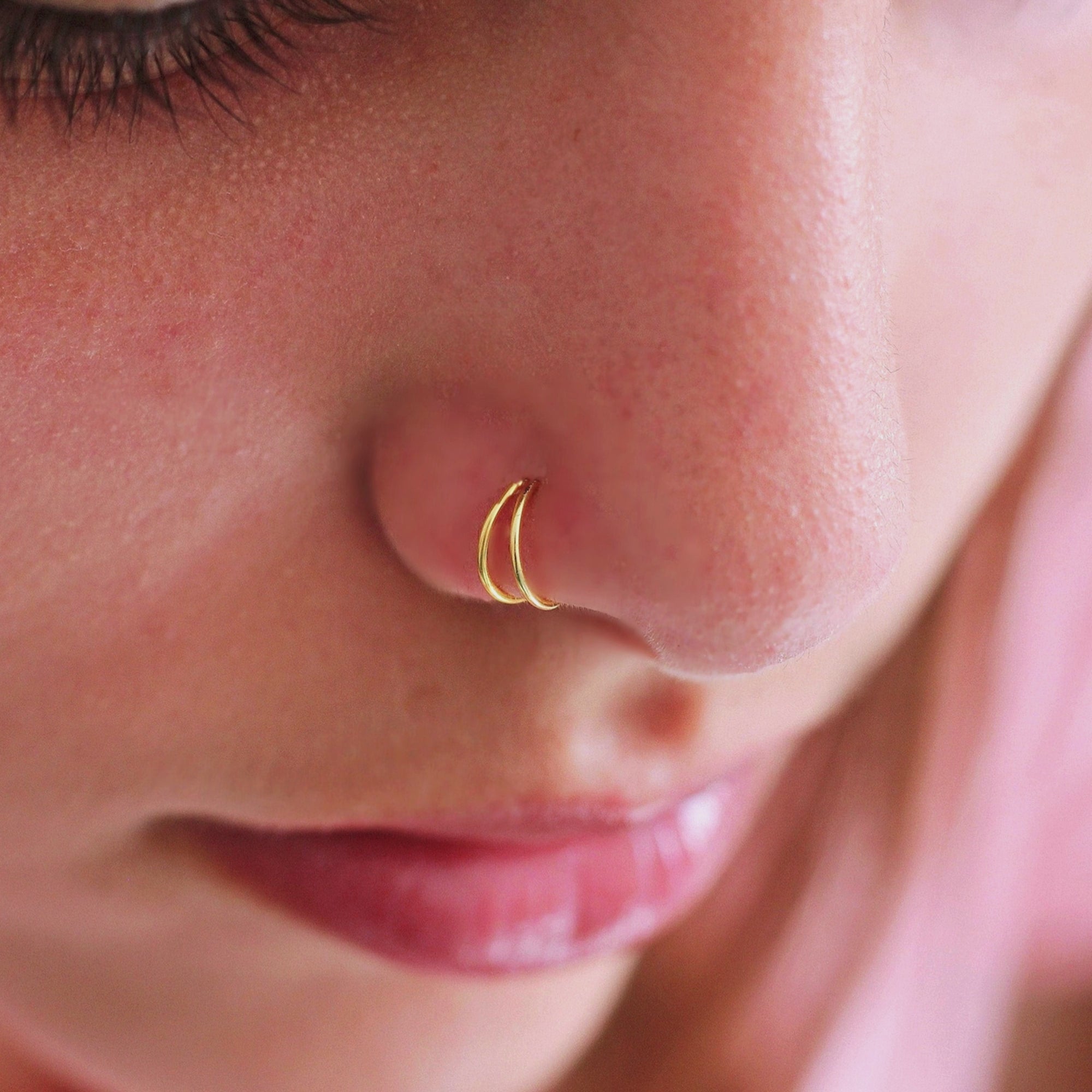 Double Nose Ring Hoop, Sterling Silver Nose Ring