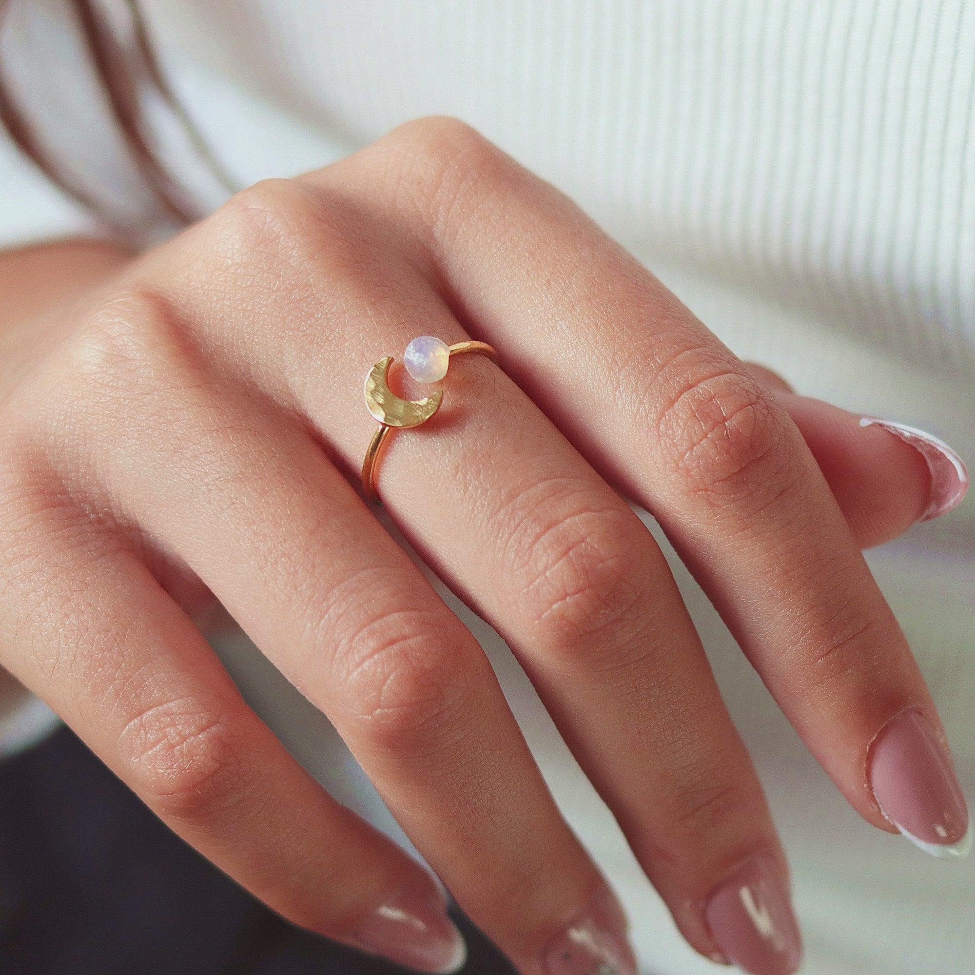 **Moon Opal Ring, Valentine Gift, Opal Midi Ring, Celestial Rings, Boho Rings**