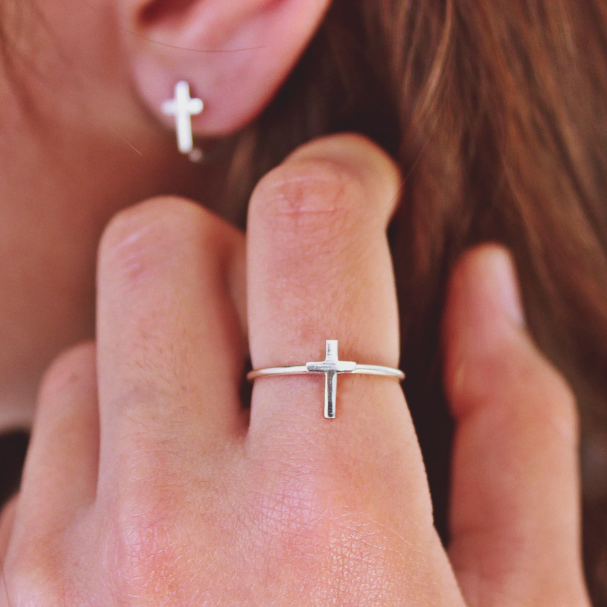 Com uma cruz delicada, este anel de prata esterlina tem um design único.